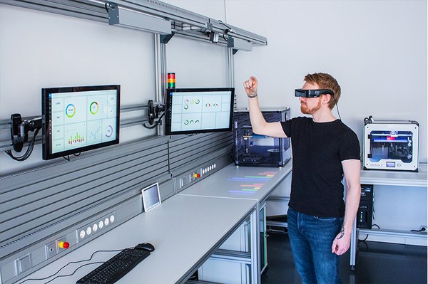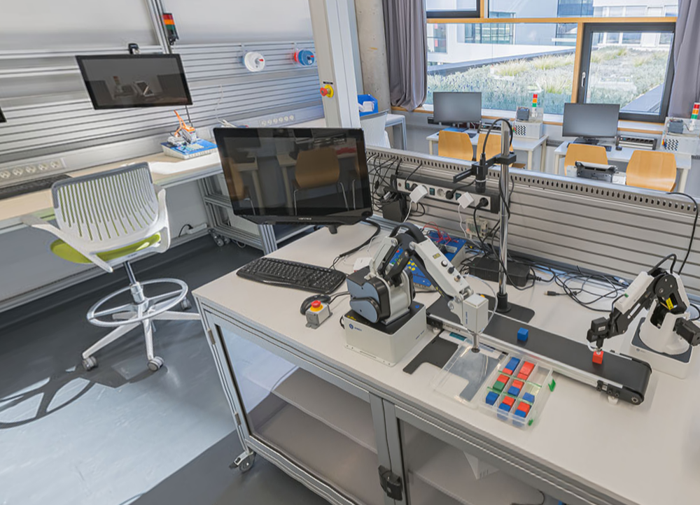 Die Laborausstattung des Industrie 4.0 Lab orientiert sich an den Arbeitsplätzen von morgen, wo Mensch-Maschine-Interaktion und neue Formen der Datenübertragung zum Alltag werden.