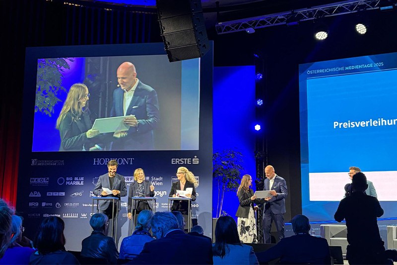 Marie Salchinger-Koch, Absolventin des Bachelorstudiums Marketing & Kommunikation, hat beim renommierten RTR-Wissenschaftspreis den 3. Platz errungen. Der Preis würdigt herausragende Abschlussarbeiten zu Themen rund um Medienwandel und Transformation. Der Preis wurde im Rahmen der „Österreichischen Medientage“ vergeben.