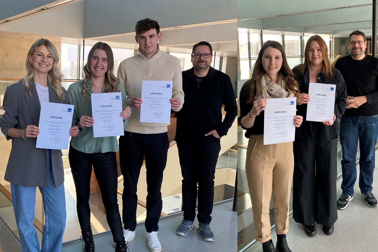 Anja Berger, Hannah Schinagl und Julian Uhlig sowie Alina Hofstetter und Sabine Walter wurden kürzlich für ihre herausragenden Leistungen im Studium „Marketing & Kommunikation“ ausgezeichnet. Neben der offiziellen Aufnahme ins Begabtenprogramm dürfen sie sich zukünftig auch über Goodies wie Tickets zu Branchenevents und Fachvorträgen freuen.