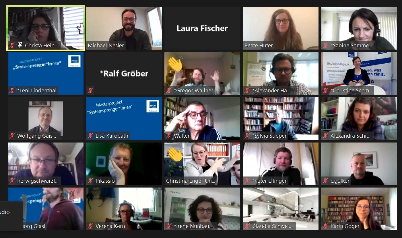 Der sozialpädagogische Fachtag bot neben den Inputs auch Austausch zum Thema und Kontakte ins zukünftige Forschungsfeld. So stellte er den Start eines Lehrforschungsprojektes vor: 26 Studierende des Masterlehrgangs Sozialpädagogik forschen bis 2022 zu Themen wie Best-Practice-Beispielen aus dem In- und Ausland, Umgang mit Extremsituationen im sozialpädagogischen Alltag sowie innovativen Ideen und Instrumenten rund um dieses Phänomen.