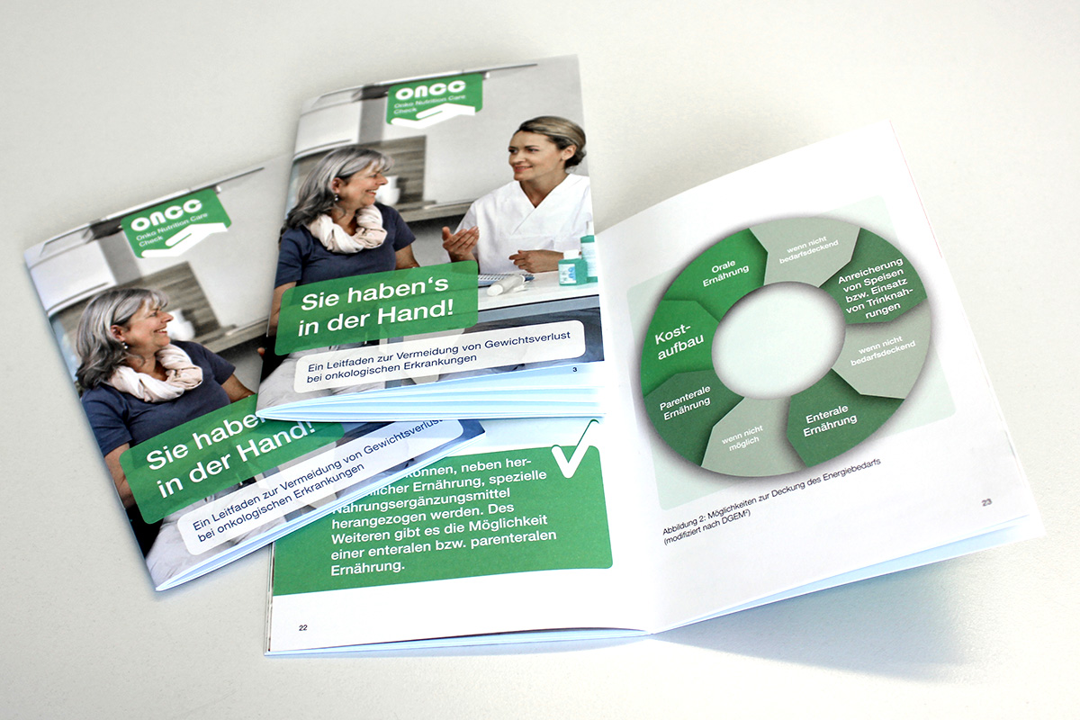 Die Gesundheitskompetenz und das Gesundheitsmanagement onkologisch Kranker soll gestärkt werden. Gewichtsverlauf, Teilaspekte des Screenings und ein Ernährungstagebuch werden eigenständig in einem dafür entwickelten Booklet dokumentiert, welches bei den ärztlichen Kontrollterminen als auch zur Ernährungstherapie mitgebracht bzw. vorgelegt werden kann.