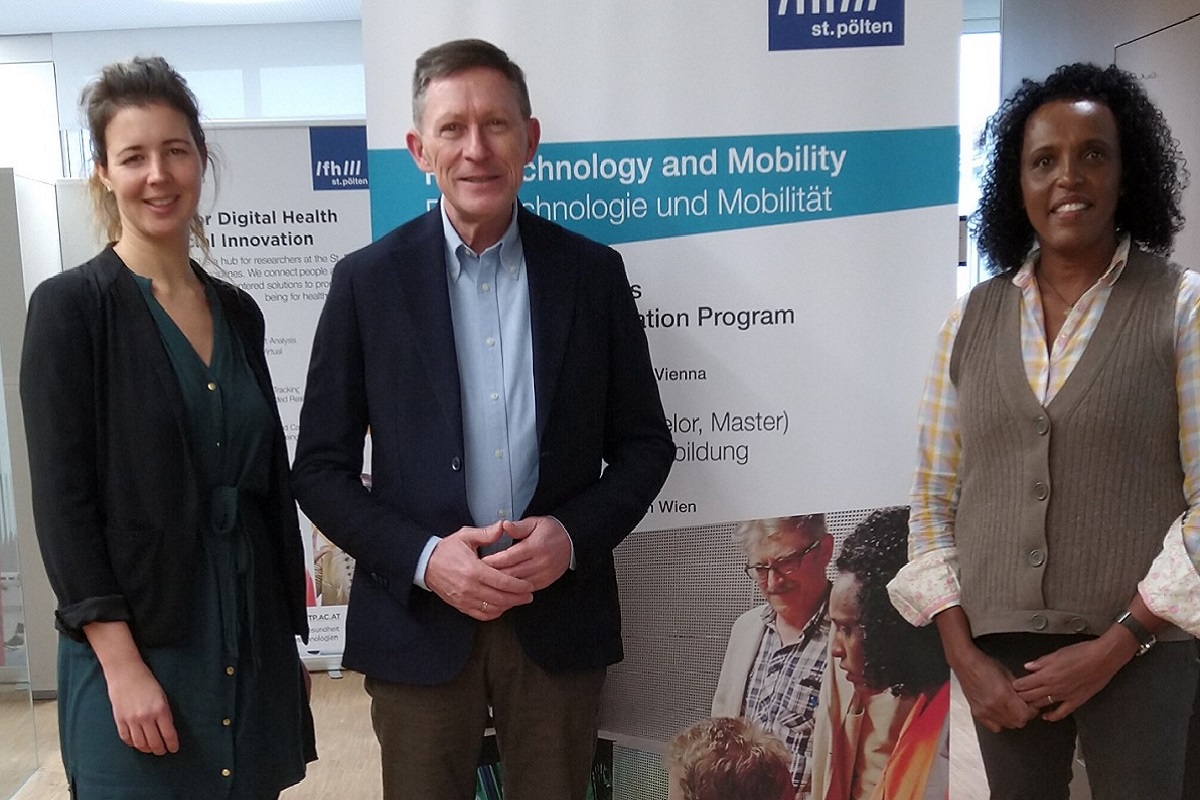 Renée Ramdohr ist die neue Generalsekretärin und Geschäftsführerin der Österreichischen Verkehrswissenschaftlichen Gesellschaft ÖVG. Am 14. Dezember besuchte sie auf Einladung von Departmentleiter Otfried Knoll die FH St. Pölten und konnte sich vor Ort ein Bild über die Räumlichkeiten, Labore und Bibliothek machen. Ihre Aufgabe besteht unter anderem darin, den Auftritt der ÖVG in der Wissenschaftscommunity zu modernisieren, zu verjüngen und Synergien in den Kommunikationskanäle zu heben.