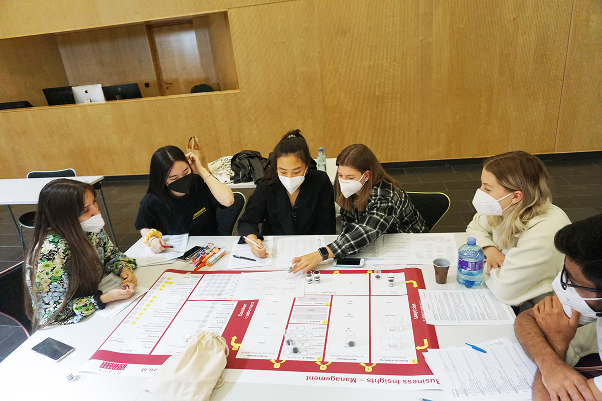 Studierende des Studiengangs Management & Digital Business erlernen unternehmerische Prozesse mit Hilfe eines Unternehmensplanspiels