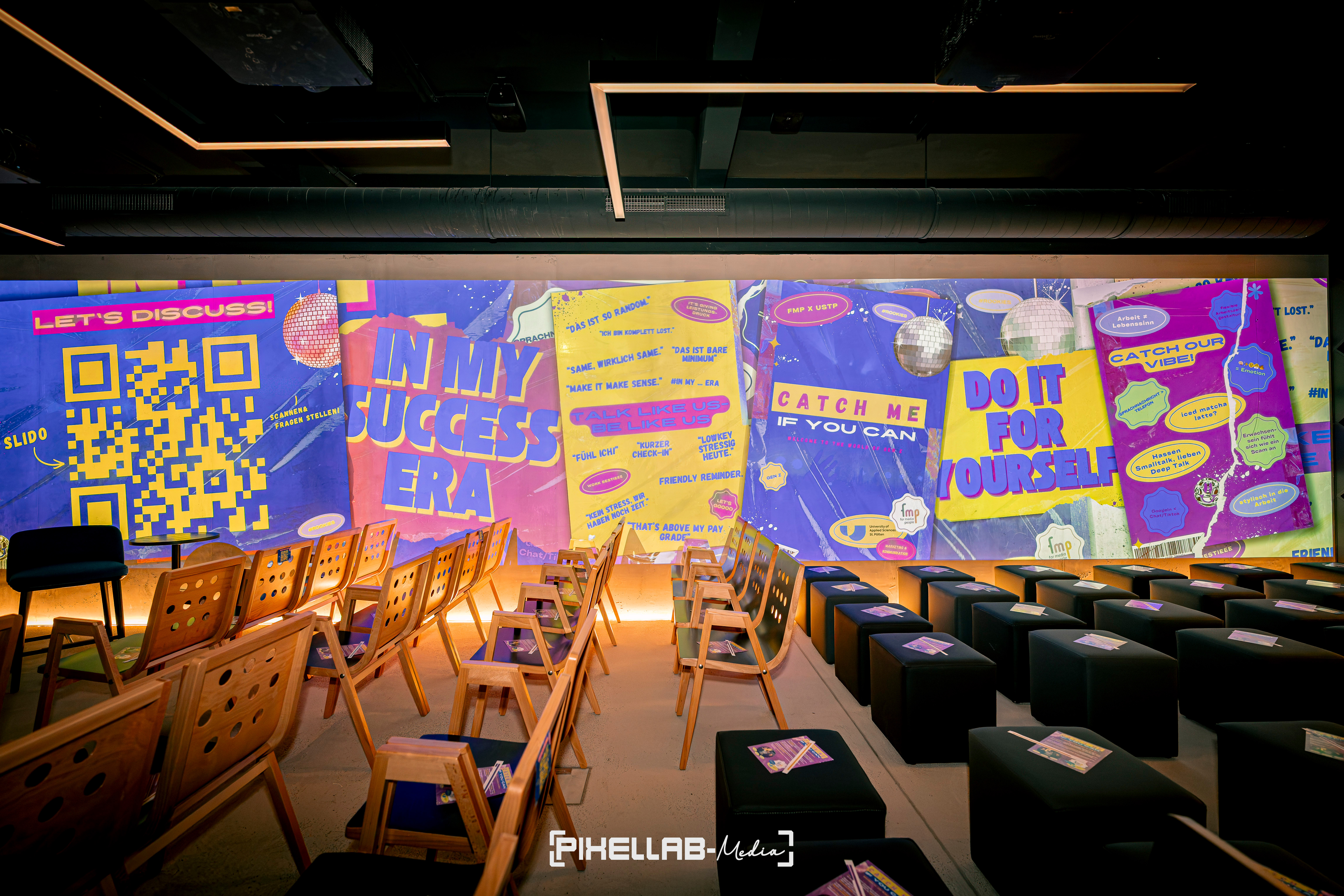 Grell-bunte Projektionen, Buzzwords an den Wänden und Matcha Shots am Eingang: Schon beim Ankommen war klar, dass dieser Abend kein klassischer Paneltalk werden würde. Nach Monaten voller Brainstormings, Pitches, Konzeptänderungen und Diskussionen war es am 28. Jänner endlich so weit: Der diesjährige „FMP Rookie Talk #64“ in Kooperation mit dem Bachelor-Studiengang Marketing & Kommunikation der USTP ging über die Bühne – genau so, wie ihn sich die Studentinnen erhofft hatten. Offen, lebendig, diskursiv. Und vor allem: mit viel Spaß.