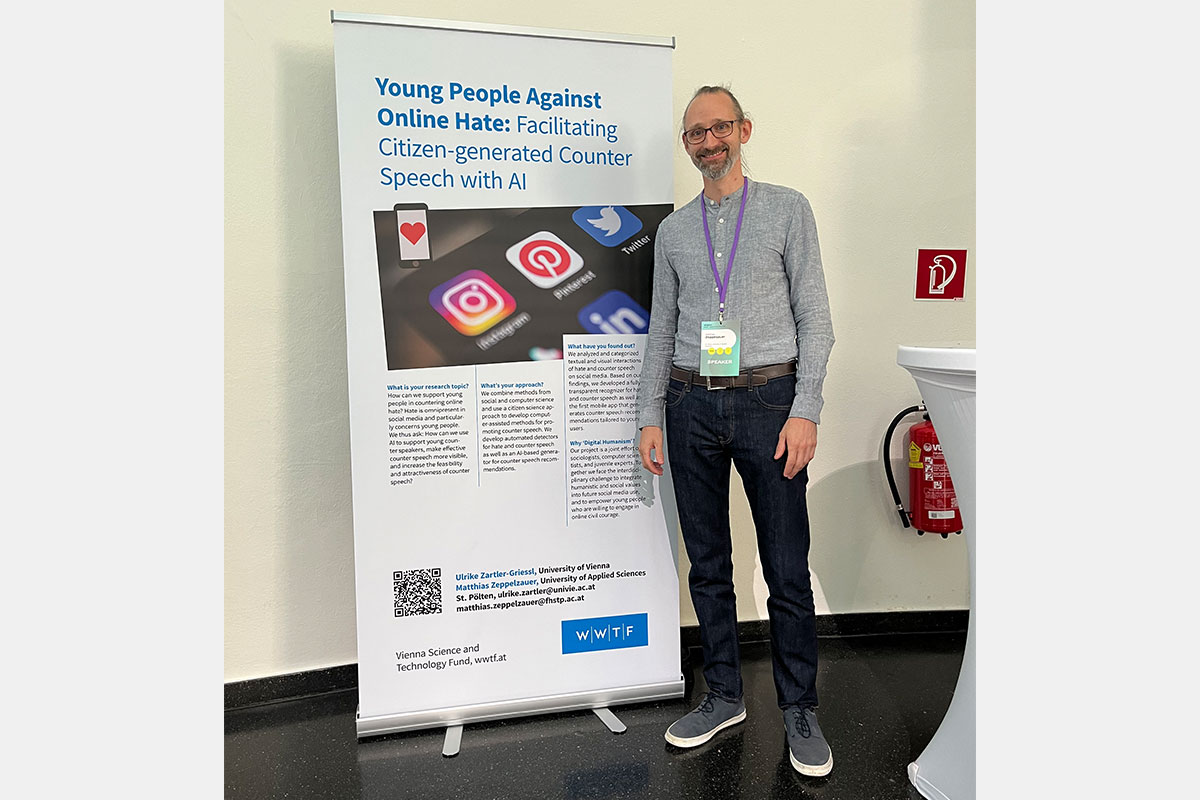 Das vom WWTF geförderte Forschungsprojekt "Counter Speech: Young People Against Online Hate" war Teil der Digital Humanism Conference, die von 26. bis 28. Mai 2025 in Wien stattfand. Das Projekt ist am Institut für Creative Media Technologies der FH St. Pölten angesiedelt.