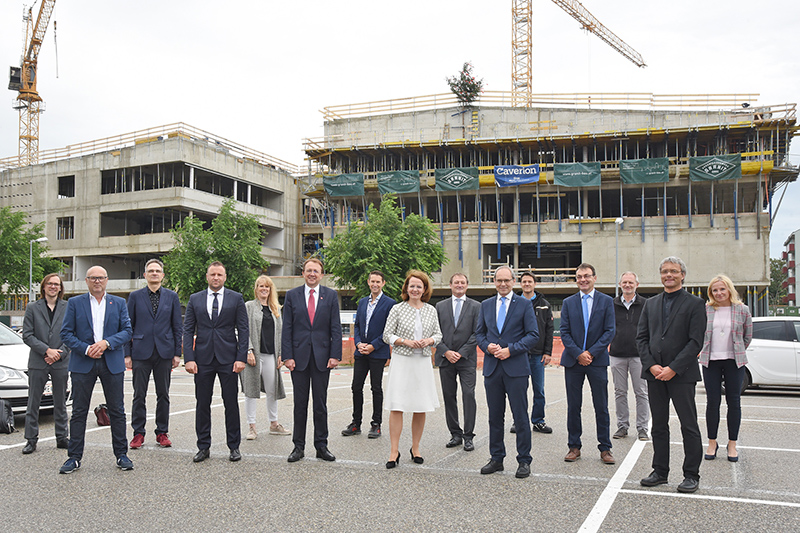 Der Rohbau des FH-Zubaus wurde trotz Einschränkungen durch die Corona-Pandemie kürzlich planmäßig fertiggestellt und die Dachgleiche begangen