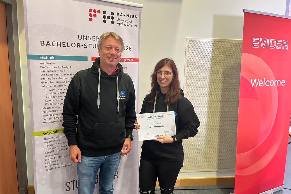 Die Firmenpartner Asfinag, Kärntner Linien, Kärntner Sparkasse sowie KELAG haben den acht Teams spannende Aufgaben gestellt, die am Freitag von einer Fachjury und einer Unternehmensjury bestehend aus hochrangigen Firmenvertreter*innen bewertet wurden. Das Team rund um Anna Neubacher (3. Semester) hat beide Jurys überzeugt und sich den ersten Platz geholt. Ihr Team hat die Anforderungen des Hackathons am besten umgesetzt, vernetzt gedacht und auch das Ergebnis auch souverän präsentiert. Als Belohnung gab es neben Gutscheinen auch eine Drohne.