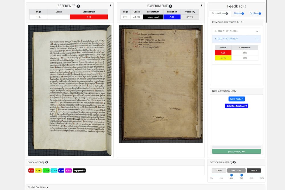 „Wir verbinden die Vorteile des maschinellen Lernens mit der menschlichen Expertise“, sagt Seidl. Die Maschine macht den Schriftforscher*innen, den Paläograf*innen, einen Vorschlag zur Schreiberhand. Die Expert*innen können diesen annehmen, ablehnen oder einen anderen Vorschlag machen. Durch die Bewertung der Expert*innen wird das Computermodell laufend verbessert. „Der Vorteil ist, eine große Menge an Manuskripten viel schneller in einem ersten Schritt einordnen zu können, als dies Menschen machen könnten“, so Seidl.