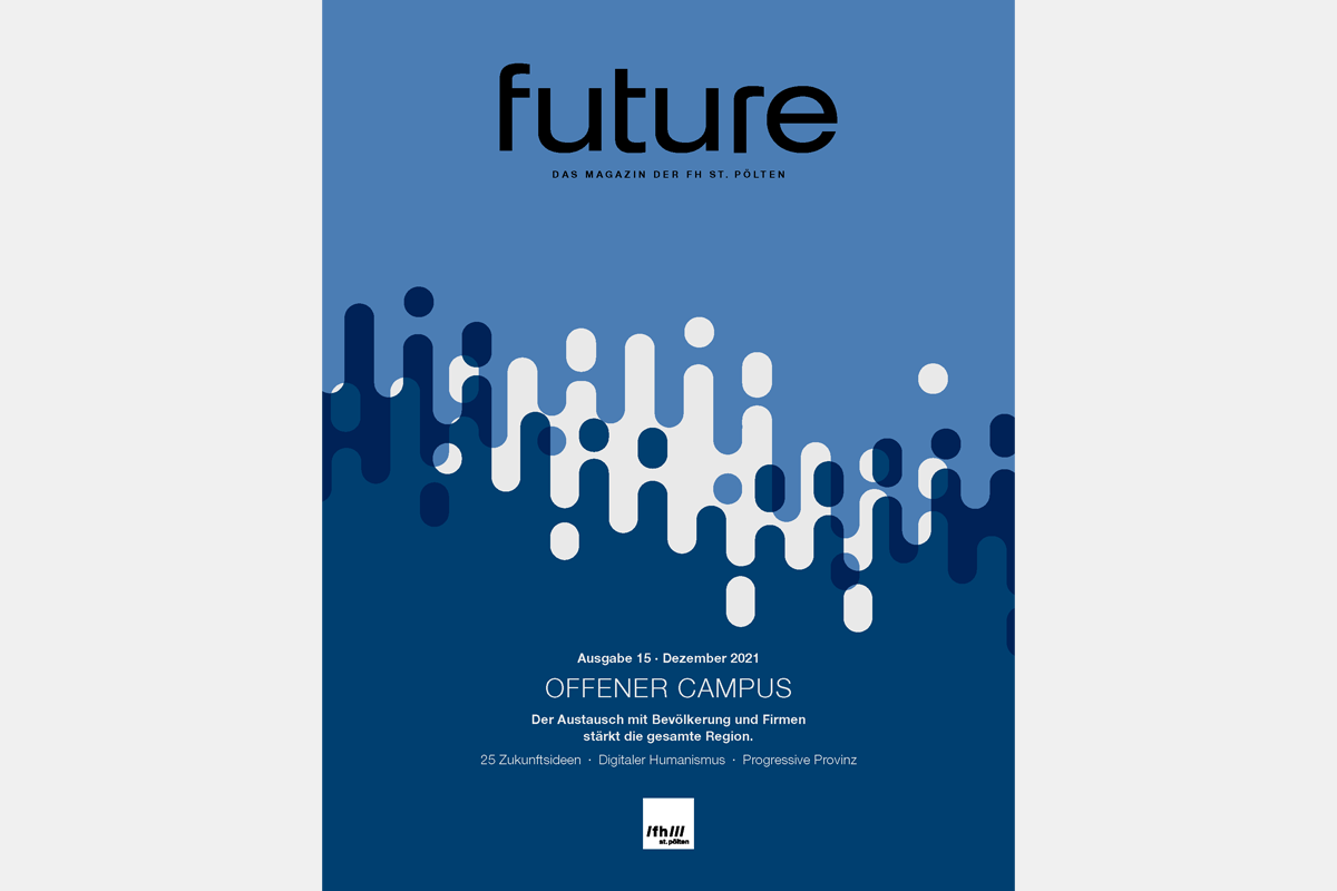 Mit der 15. Ausgabe des FH-Magazins „future“ beleuchtet die FH St. Pölten all jene Vorteile, die sich aus einer engen Verankerung in der Region ergeben, blickt auf den neuen Campus St. Pölten als Begegnungsort und zeigt auf, warum Regionen auch auf europäischer Ebene eine zentrale Rolle spielen.