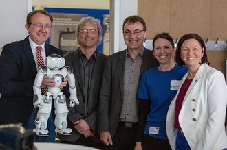 Auch St. Pöltens Bürgermeister Matthias Stadler und NÖ Landtagsabgeordnete Doris Schmidl war unser open.day einen Besuch wert. Sie nahmen an einer Campusführung teil und lernten auch unsere programmierbaren Roboter kennen.
