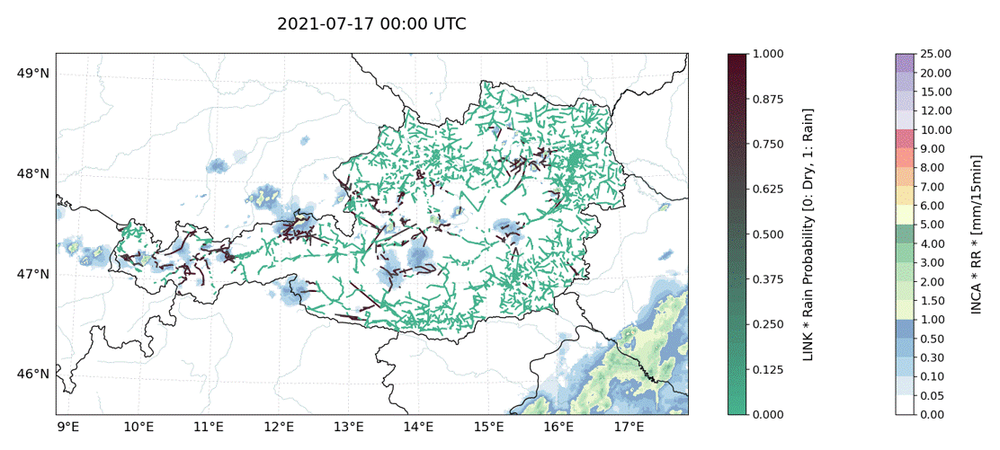 Auf Grund des stetigen Ausbaus des Mobilfunknetzes sind Daten über die physikalischen Eigenschaften der Richtfunkverbindungen in großer Menge und weitgehend flächendeckend verfügbar. Die verwendeten Daten wurden vom Projektpartner Hutchison Drei Austria zur Verfügung gestellt und bestanden aus über 4.500 kommerziellen Richtfunkstrecken. Im Projekt LINK untersuchten die Forschenden die Verwertbarkeit dieser Richtfunkdaten für Vorhersagen von Extremwetterereignissen. Um ein Modell zu erstellen, wurden Methoden der künstlichen Intelligenz (KI), insbesondere des Maschinellen Lernens, eingesetzt.