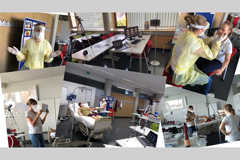 Die fachpraktischen Übungen mussten aus dem Sommersemester 2019/20 nachgeholt werden und dies geschah unter der Federführung von FH Dozentin Lisa Brunhuber im Studiengang Gesundheits- und Krankenpflege. Die aktuelle Situation veranlasste das Team das Training nicht als Präsenzlehre, sondern als Fernlehre umzusetzen.