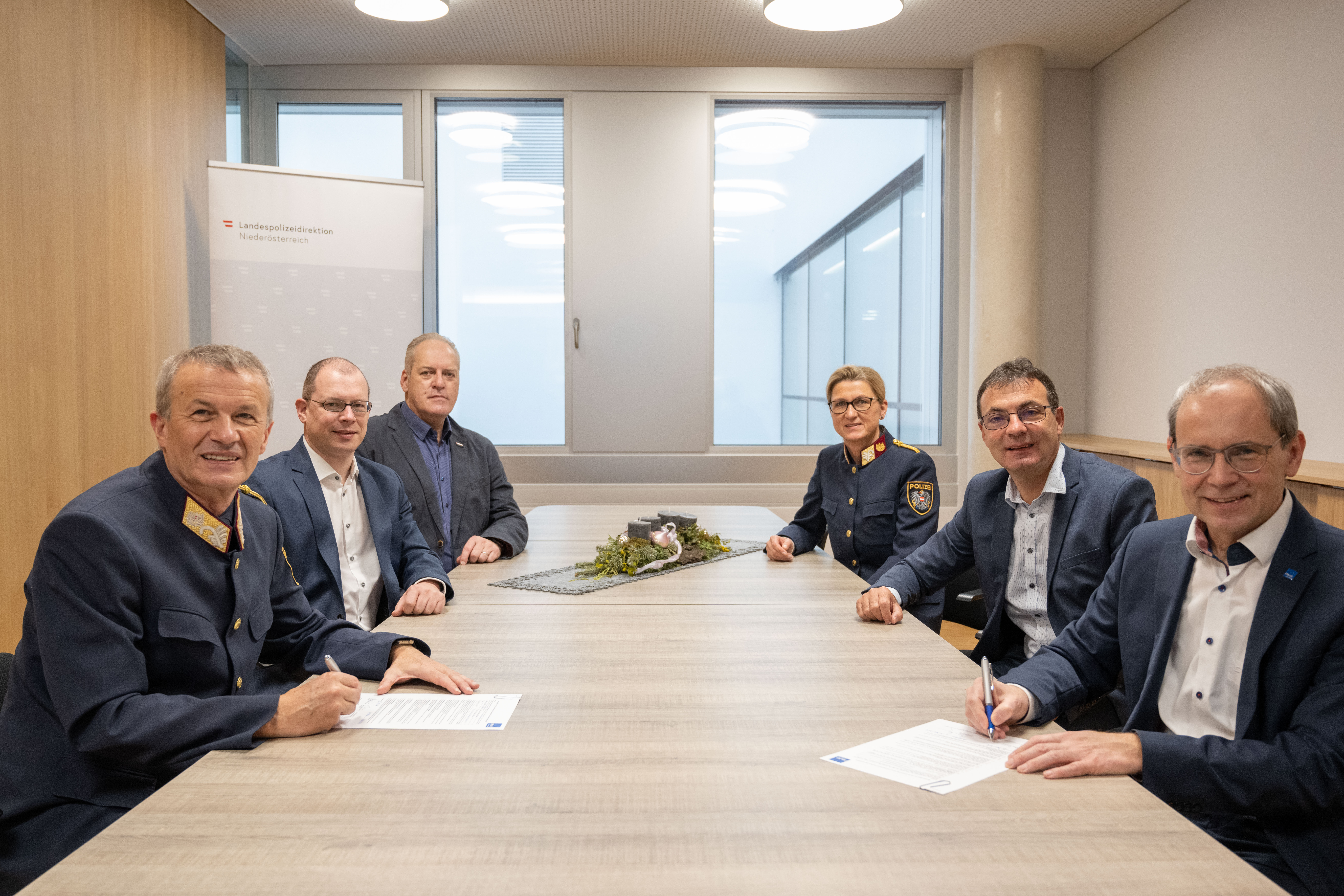 Bei der Vertragsunterzeichnung wurde auch über mögliche zukünftige Kooperationen zwischen der FH St. Pölten und der Polizei Niederösterreich beraten.