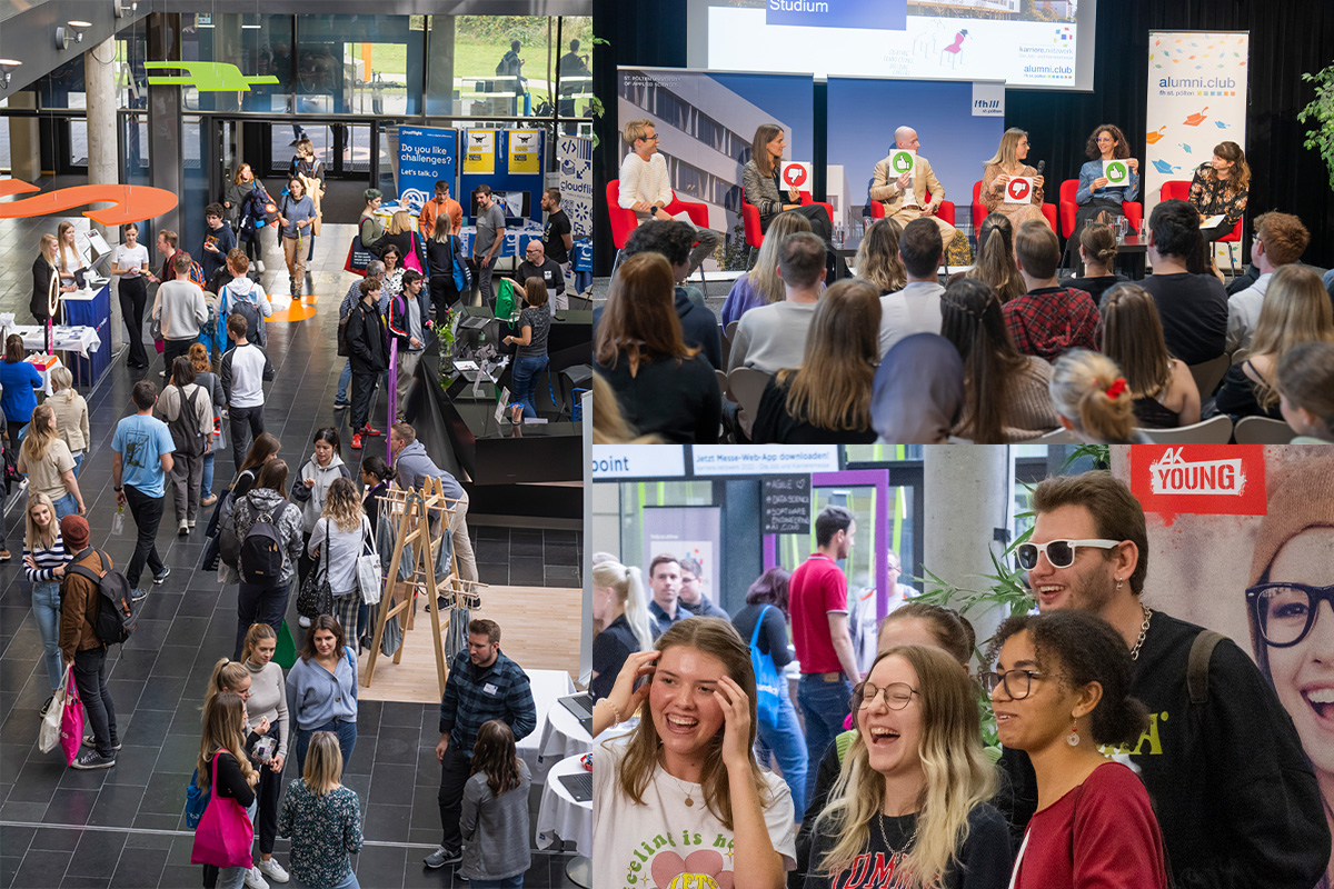 Knapp 600 Studierende informierten sich am 19. Oktober bei rund 70 Aussteller*innen im neuen Campus St. Pölten über Karriere- und Jobmöglichkeiten.