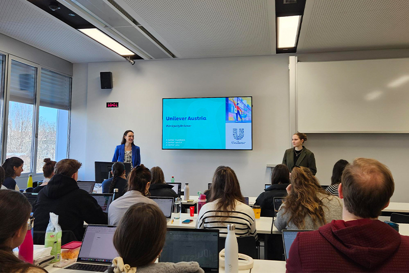 Ein Gastvortrag von Unilever Austria, serviert von Elisabeth Hannah Putz (Teilnehmerin des „Unilever Future Leaders Programme“) und Marlene Friedl (Marketing & CSP Manager Foods). Die beiden gaben einen exklusiven Blick hinter die Kulissen der Markenwelt von Knorr, Kuner & Co.
