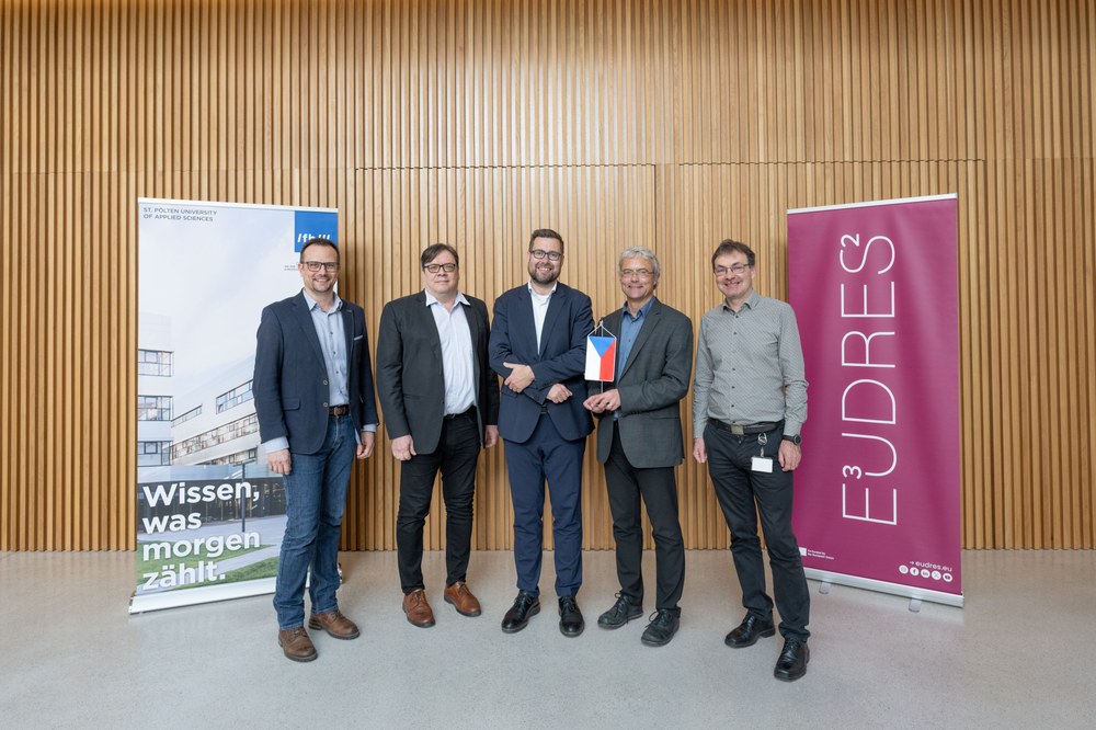 Das Interesse an den Aktivitäten von E³UDRES² und der strategischen Entwicklung der FH St. Pölten ist auch in anderen Ländern groß. Kürzlich besuchte der stellvertretende tschechische Bildungsminister Jiří Nantl die FH St. Pölten, um sich über die Gesamtentwicklung und mögliche Kooperationsmöglichkeiten zu informieren.