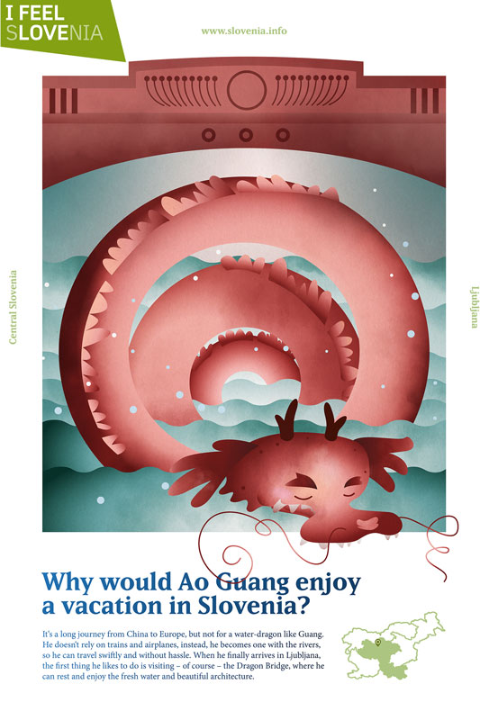 Der vom Tourismusverband Slowenien ausgeschriebene Award für junge Kreative stand unter dem Motto „Slowenien, Land der sauberen und gesunden Gewässer“ und animierte Tiny Pribitzer zum Entwurf ihrer Plakatidee „Mystische Wasserkreaturen“ die schlussendlich das Rennen machten.