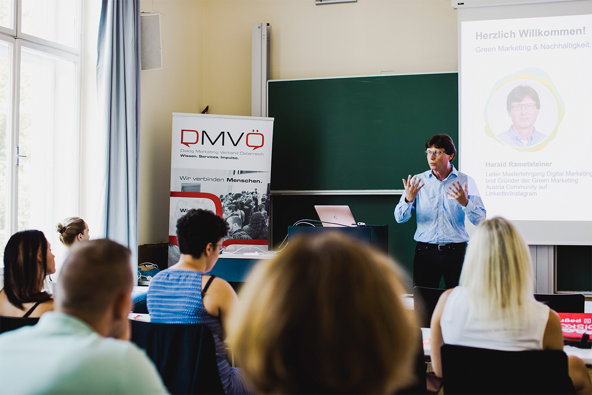 Die FH St. Pölten war doppelt vertreten. Lehrgangsleiter Harald Rametsteiner behandelte gemeinsam mit Nicole Brandl von Mondi Papier "Green Marketing & Nachhaltigkeit: Lösungsansätze im B2B am Beispiel Mondi Papier". Der FH-Dozent ist Gründer der führenden digitalen Plattformen für Green Marketing auf Instagram und LinkedIn.