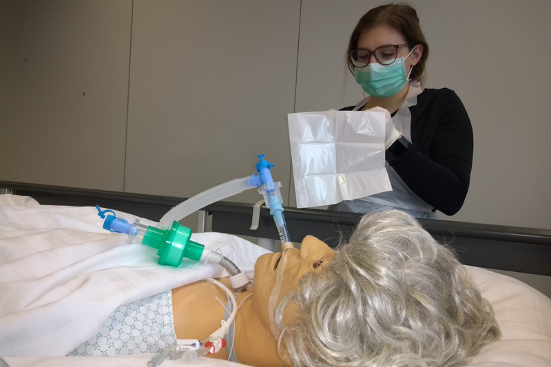 Weitere Schwerpunkte waren das sterile endotracheale Absaugen sowohl mittels Absaugkatheter offen, als auch unter Zuhilfenahme eines geschlossenen Systems. Diese Art des Absaugens betrifft Patientinnen und Patienten hauptsächlich auf Intensivstationen.