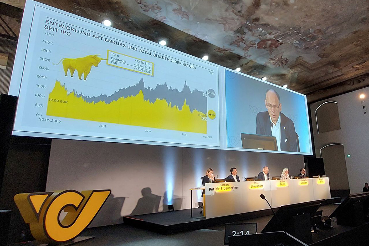 Ein besonders spannender Aspekt war die Generaldebatte. Dabei wurden die Fragen der Aktionär*innen zunächst gesammelt, an die entsprechenden Fachabteilungen zur Beantwortung weitergeleitet und schließlich vom Vorstand öffentlich beantwortet. Auch der hohe Stellenwert, den Nachhaltigkeit in der strategischen Ausrichtung der Österreichischen Post einnimmt, wurde mehrfach betont und eindrucksvoll vermittelt.