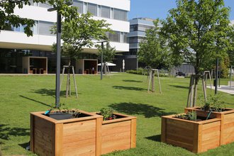 Im Rahmen des Projekts „Nachbarschaft stärken - Gemeinschaft leben“ wurden die Hochbeete von und mit Studierenden des Master-Studiengangs Soziale Arbeit errichtet, um den Mitarbeiter*innen der FH St. Pölten sowie den Anwohner*innen und Organisationen der Nachbarschaft die Möglichkeit zu geben, gemeinsam zu gärtnern. Die Hochbeete im Campus Garten bieten Platz für eine Vielzahl von Pflanzen und stehen allen Interessierten offen, um bepflanzt, gepflegt und geerntet zu werden.