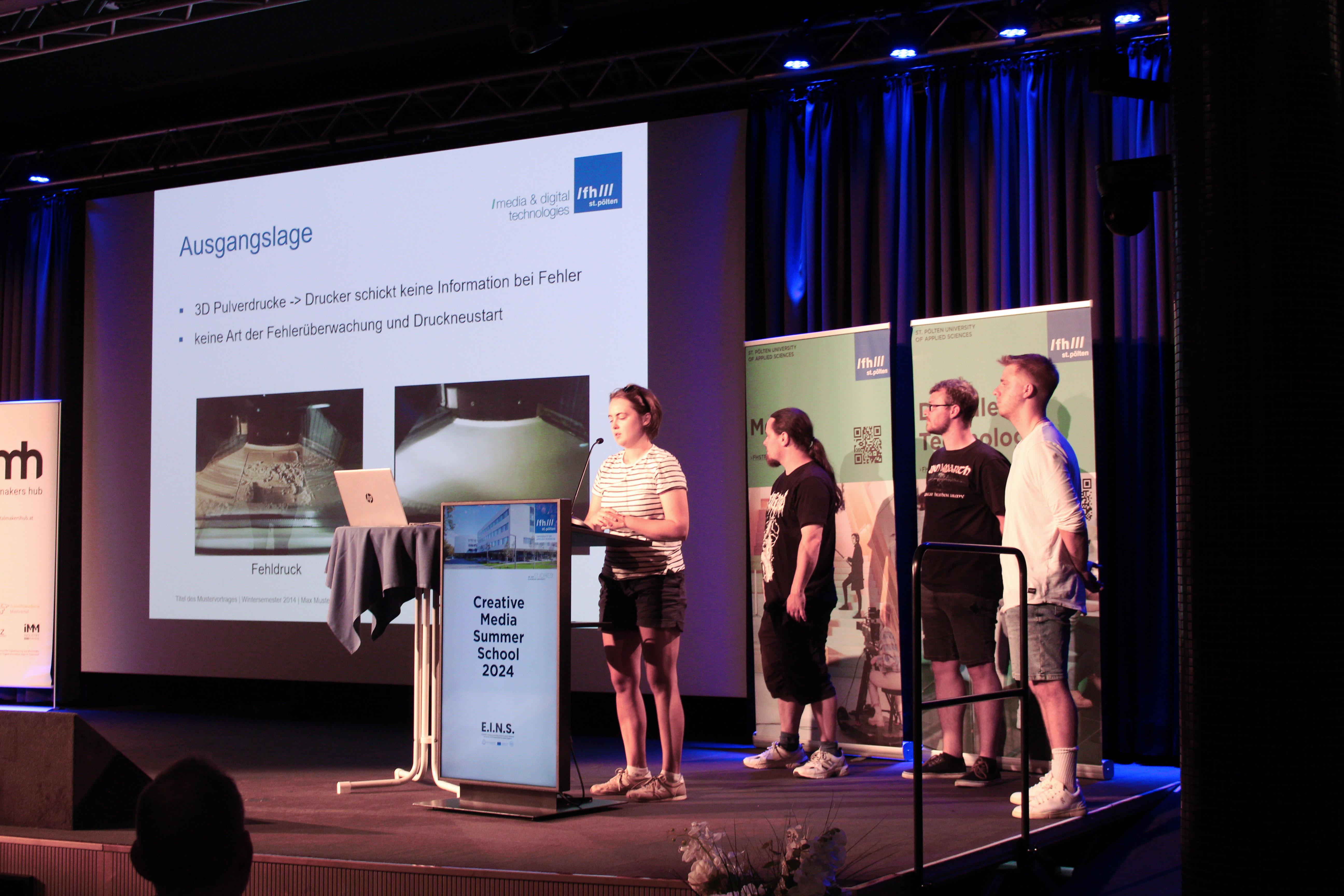 Die Challenge wurde von Trivion gestellt. Das Unternehmen produziert industrielle Bauteile aus verschiedensten Metallen und Kunststoffen mithilfe von 3D-Druckern. „Die Umsetzung der additiven Fertigung kann mehrere Stunden in Anspruch nehmen, insbesondere in industriellen Umgebungen. Während dieser Zeit können Fehler auftreten. Diese führen dann in der Regel zu unerwarteten zusätzlichen Kosten für den Hersteller. Trotz dieser Tatsache gibt es immer noch kaum industrielle Drucker, die über automatisierte Fehlererkennung in der Produktion verfügen. Wir möchten diese Situation ändern“, beschreibt Thomas Gruber, CEO und Mitgründer von Trivion, die Herausforderung bei der Abschlusspräsentation. Dafür soll eine externe Kamera mit einer KI-basierten Bild- oder Videoauswertung eingesetzt werden. Insgesamt drei Teams von Studierenden unterschiedlicher Hochschulen haben sich dieser Problemstellung gewidmet. Das Team der FH St. Pölten konzentrierte sich dabei auf die Fehlererkennung mittels KI. Sie trainierten ein KI-Modell mit Fotos, die alle fünf bis zehn Sekunden aufgenommen wurden. Die KI lerne zu erkennen, ob der Drucker noch in Bewegung ist oder sich im Stillstand befindet und der Druck dementsprechend abgebrochen wurde. Eine automatische Benachrichtigung wurde ebenfalls in die Überlegungen integriert und bietet Potenzial für eine Weiterentwicklung.