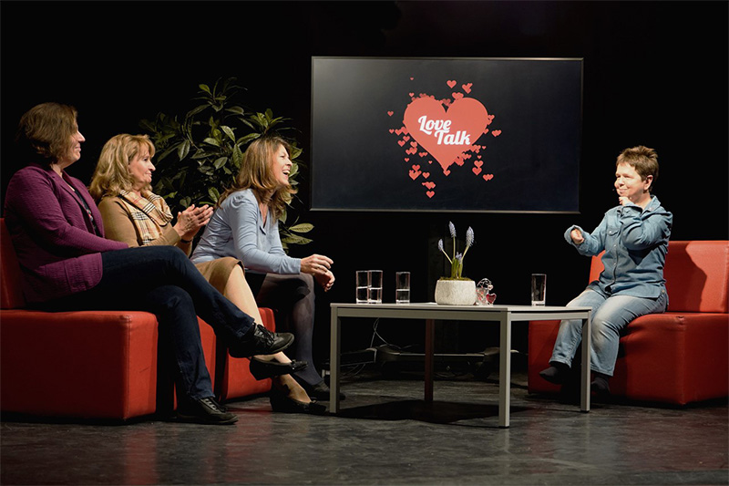 „Love Talk“ ist eine Talkshow über Liebe, Sexualität und Partnerschaft mit besonderen Bedürfnissen, produziert von Studierenden des Masterlehrgangs Sozialpädagogik und Studierenden des Bachelor Studiengangs Medientechnik.