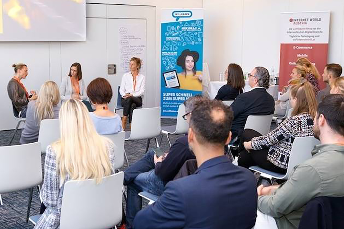 Verena Binder-Krieglstein (Head of Employer Experience und Diversity-Beauftragte bei A1 Telekom Austria) und Iris Bergmann (HR-Verantwortliche bei Nagarro Austria) diskutierten gemeinsam mit Barbara Klinser-Kammerzelt zum Thema "Remote Work als Asset im Kampf um die Best Heads".