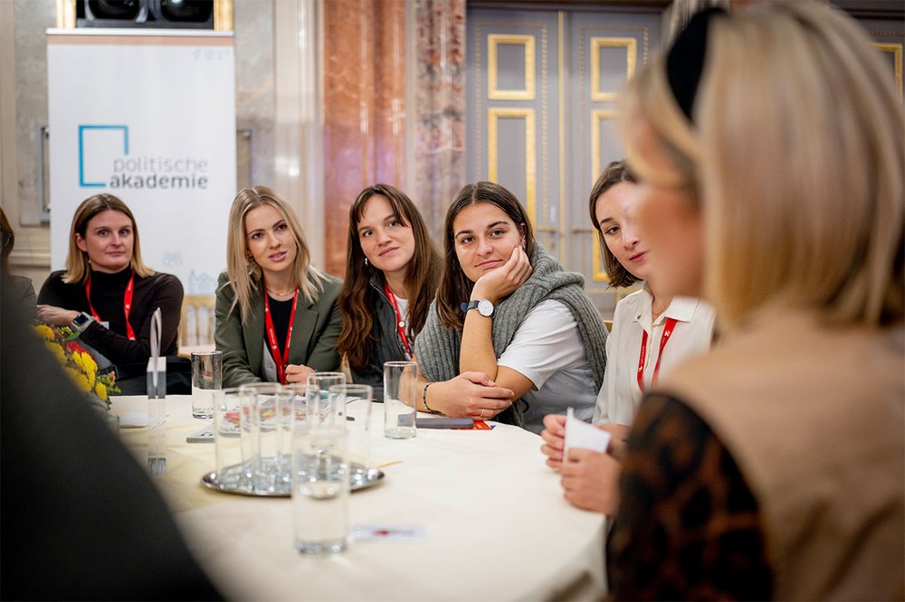 Medienmanagement-Studentin Katrin Wallner (2.v.l.) beim Austausch mit Medienfrauen| Copyright: Karo Pernegger