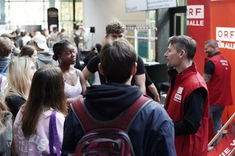 Einblicke in die Zeit nach dem Studium und in mögliche Karrierewege boten die Podiumsdiskussionen mit Absolvent*innen der Studiengänge Medienmanagement und Medientechnik. Für Medienmanagement-Student Julius Nagel zeigte sich die karriere.netzwerk als äußerst wertvoll: „Die Messe bietet uns viele Kontakte an einem Ort und genau in dem Segment, in dem wir unsere berufliche Zukunft sehen.“