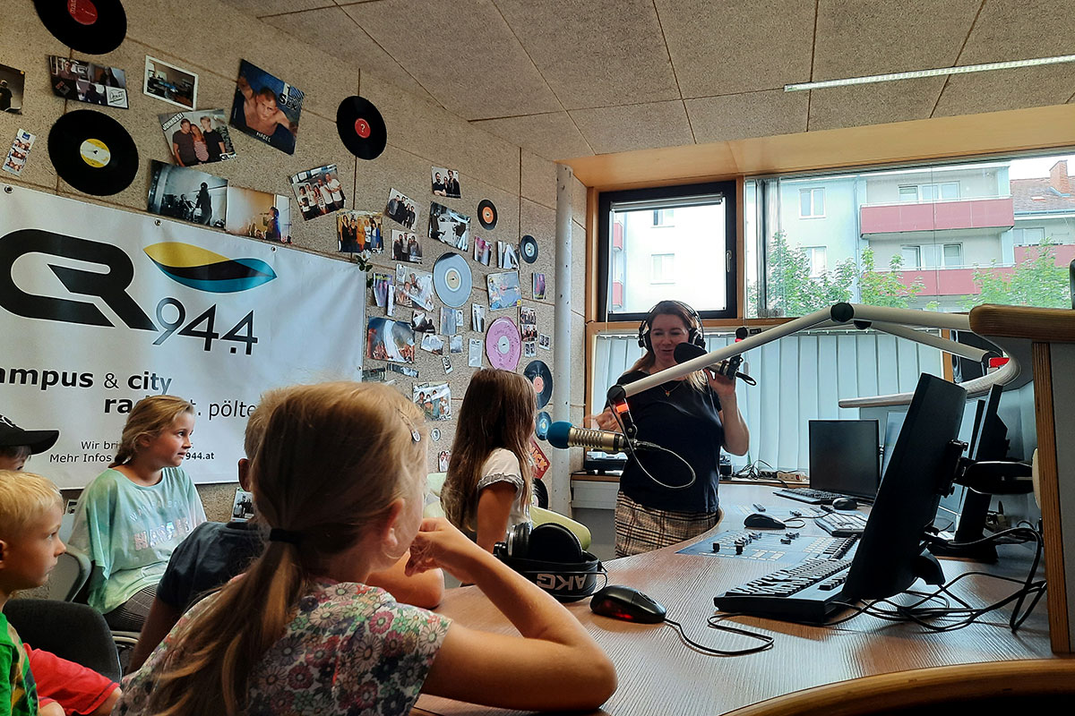 Während der Betreuung im Sommer 2022 konnten 16 Kinder einen spannenden Ausflug in das Campus & City Radio am Campus der FH St. Pölten machen.
