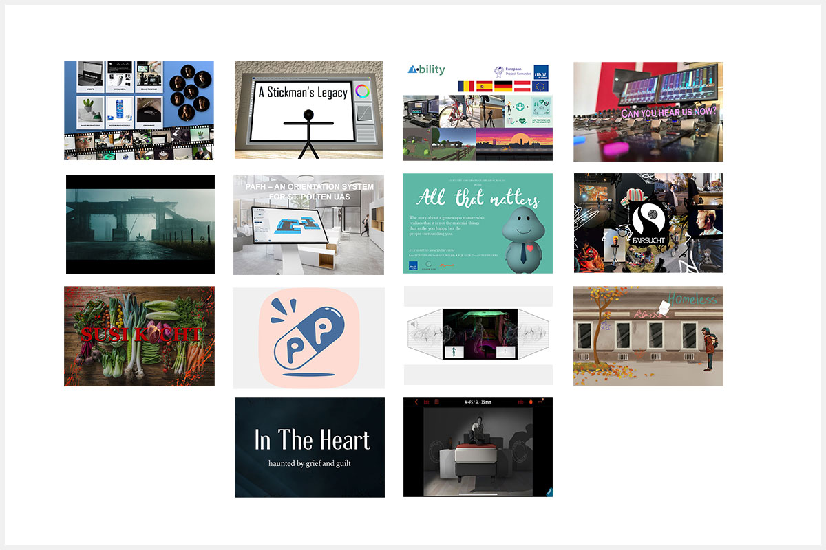 Die Vielfalt der Projekte reichte von Kurzfilmen und Musikvideos über Audio Produktionen und experimentelle Produktvideos bis hin zu Apps oder Games.