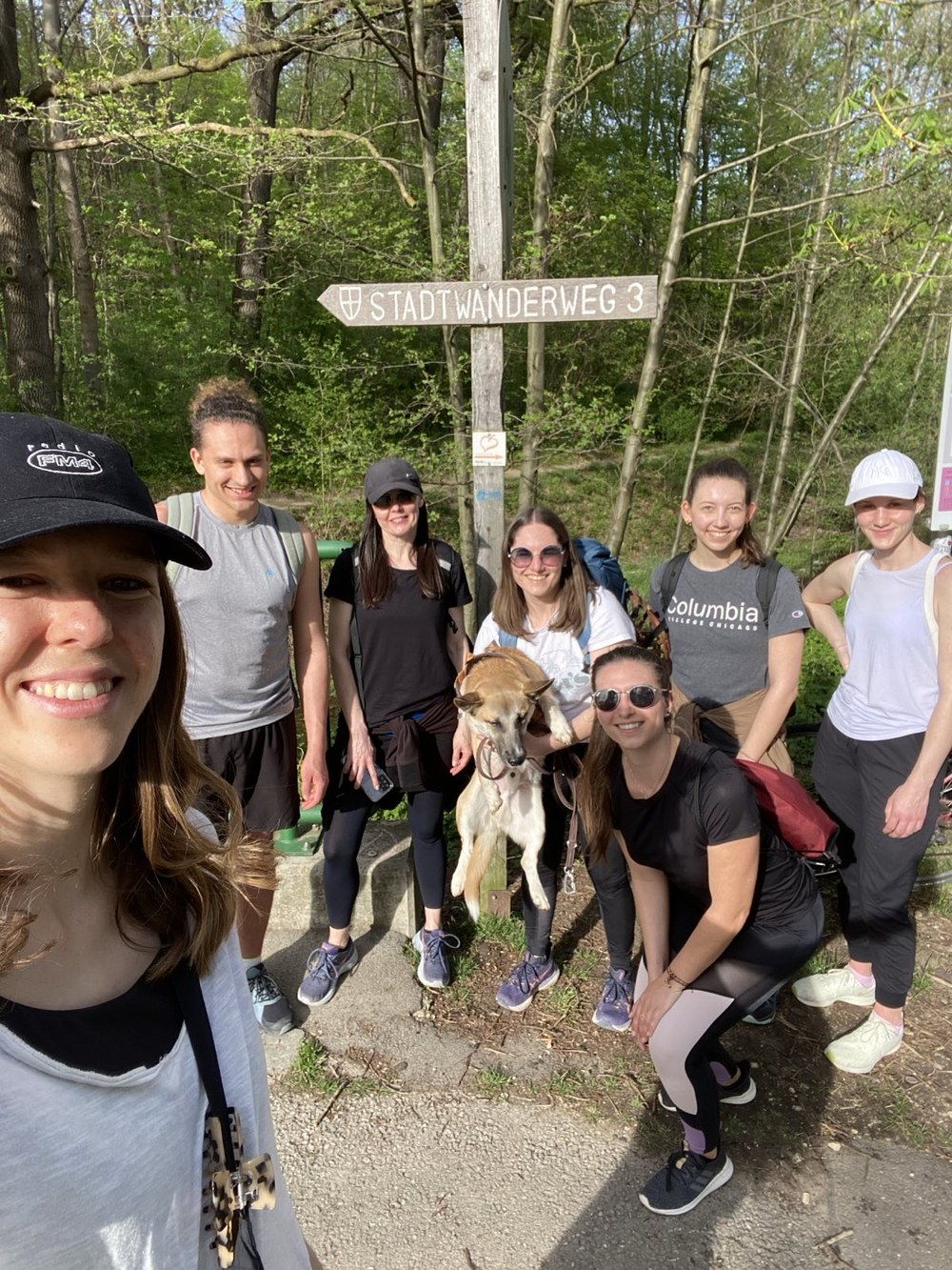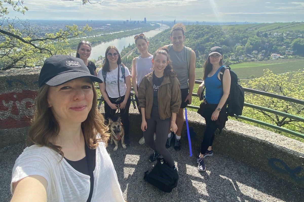 Rund 22km legten Anna Mühlburger, Lara Hartmann, Hanna Eder, Katja Haunold, Hanna Nemeth und Matthias Schnabel gemeinsam mit Studiengangsleiterin Monika Kovarova-Simecek zurück - diesmal von Nussdorf über den Kahlenberg und Cobenzl bis zur Marswiese, dann zum Schwarzenbergpark und noch ein Stück weiter zum Schottenwald.