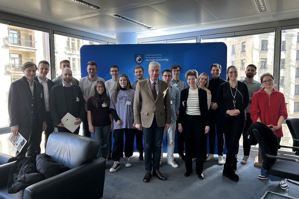 Empfangen wurden die Studierenden unter anderem von General Robert Brieger, dem Vorsitzenden des Militärausschusses der Europäischen Union (EUMC), der sich Zeit für ein Gespräch nahm. Für viele ein eher ungewöhnlicher, aber umso interessanterer Programmpunkt. Wie werden sicherheitspolitische Themen vermittelt? Welche Rolle spielen Medien in der Außenpolitik? Fragen, die auch aus technischer Sicht durchaus spannend waren.
