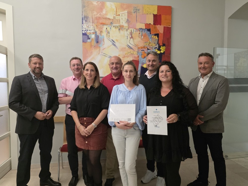 Im Rahmen der Mobilitätsbefragung organisierte die Region „Wir 5 im Wienerwald“ ein Gewinnspiel mit regionalen Gewinnen. Die Übergabe fand am 10.September 2025 in Purkersdorf statt. Am Bild hinten v.l.n.r: BGM Tullnerbach Paul Porteder, VBGM Wolfsgraben Christian Rothbauer, VBGM Purkersdorf Viktor Weinzinger, BGM Gablitz Ing. Michael Cech, Christian Ecker, vorne v.l.n.r. die drei Gewinnerinnen: Denise Neuherz, Martina Maroschek, Marijana Corkovic.