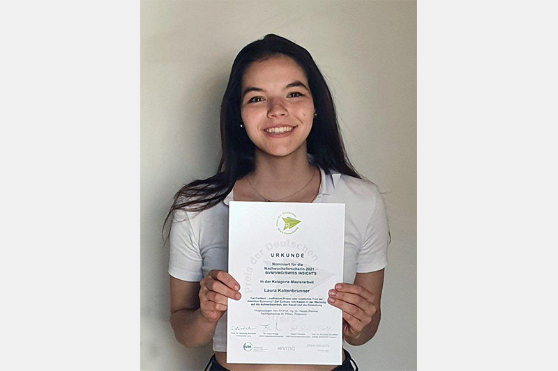 Laura Kaltenbrunner schafft es auf die Shortlist für den Preis Nachwuchsforscherin 2021 – BVM/VMÖ/SWISS INSIGHTS