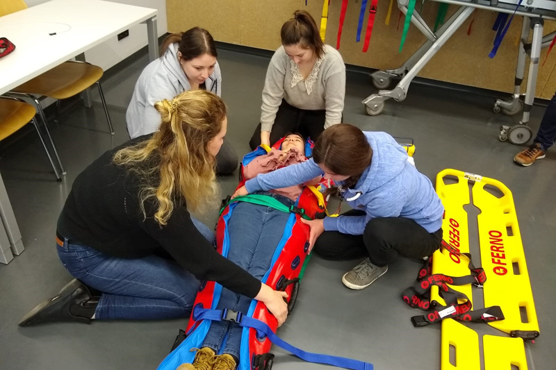 Vermittelt wurden die Grundlagen in den Bereichen Gerätelehre und Sanitätstechnik, welche als Basis für den Rettungsdienst dienen. Unter der organisatorischen Leitung des Modulleiters Stefan Rottensteiner erarbeiteten die Studierenden im Stationsbetrieb die wesentlichsten Inhalte in den Fachgebieten Geburt, Medizinproduktegesetz, Stabilisierungs- und Schienungstechniken, Infusionstechnik, Reanimationsmaßnahmen und Trauma.