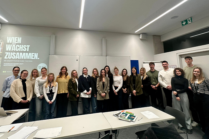 Mit dieser Fragestellung beschäftigten sich die Studierenden des Bachelorstudiums Marketing & Kommunikation im Rahmen des „Praxislabors Public Relations“ – in Zusammenarbeit mit der Stadt Wien. Den Ausgangspunkt bildete ein reales Kommunikationsbriefing von Michaela Zlamal, die das Projekt „Klima-Tour“ betreut. Ziel der Aufgabe war es, die bestehende Initiative kommunikativ weiterzudenken und neue Ansätze zu entwickeln.