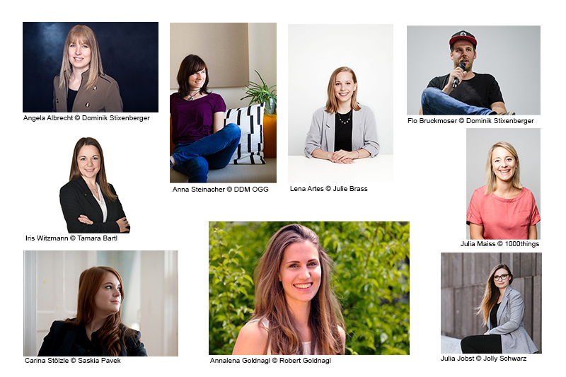 Unter den Mentor*innen sind z. B. Lena Artes, Tamara Hollerer, Sophie Dubovy, Carina Stölzle, Melanie Schomann, Annalena Goldnagl, Flo Bruckmoser, Julia Jobst, Julia Maiss, Angela Albrecht, Anna Steinacher, Iris Witzmann und Viktoria Köll.