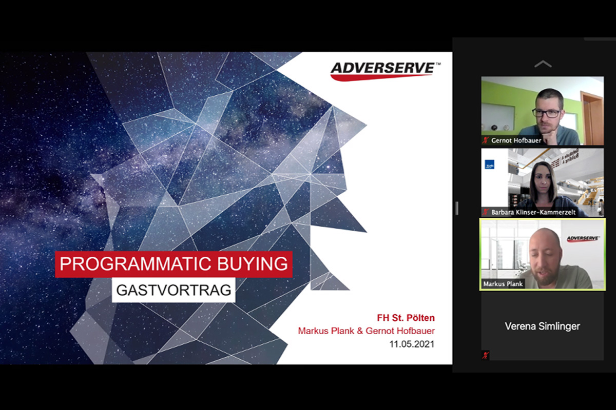 Im Gastvortrag für Studierende des Masters Digital Marketing & Kommunikation sprachen Markus Plank, IAB-Präsident und Geschäftsführer von adverserve und Gernot Hofbauer, Digital Implementation Manager, zum Thema Programmatic Advertising in Walled Gardens und gaben praktische Einblicke ins Set-up von Programmatischen Kampagnen.