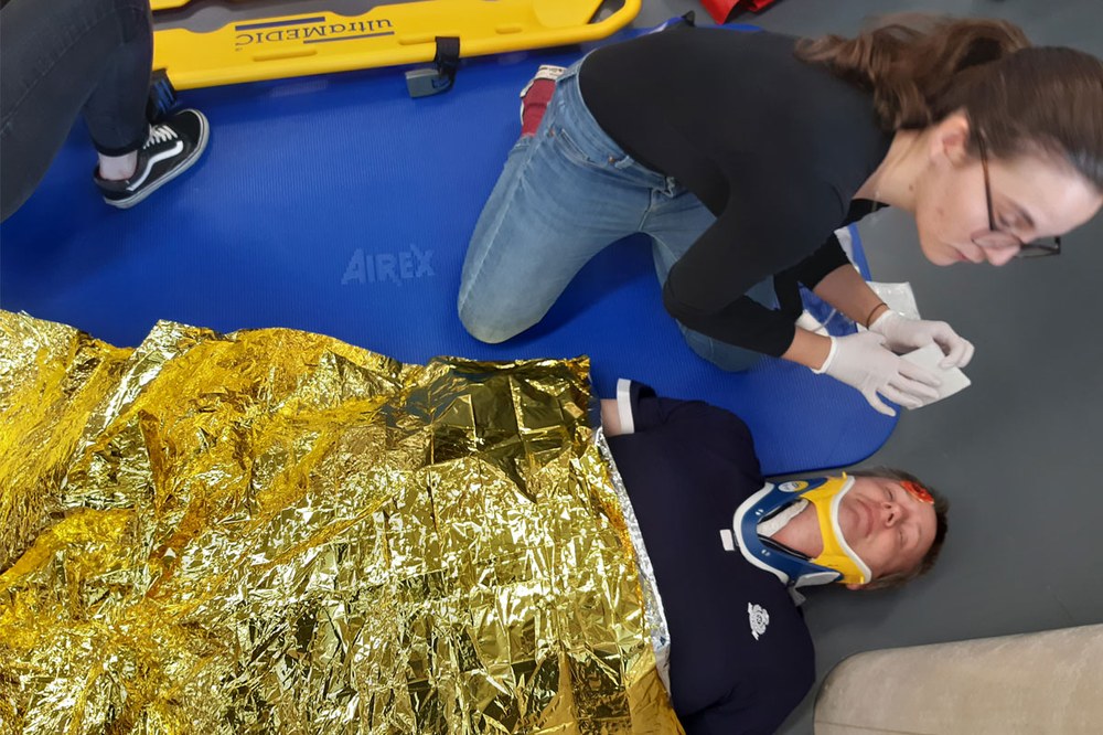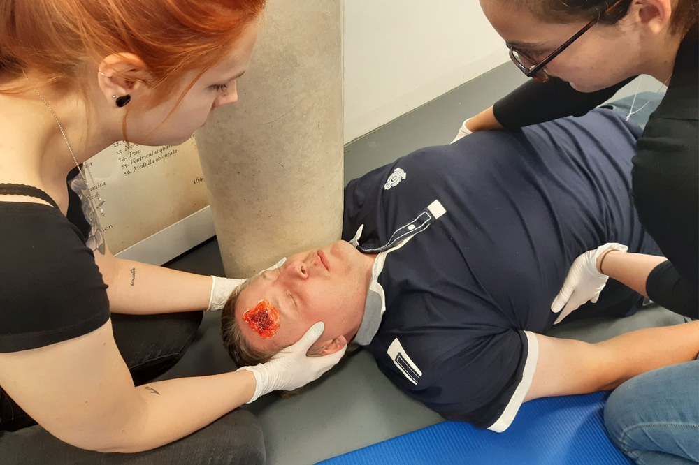 Verschiedene Notfallszenarien wurden – unter Zuhilfenahme von Statist*innen – realitätsgetreu nachgestellt und das theoretische und praktische Fachwissen integrierend geprüft.