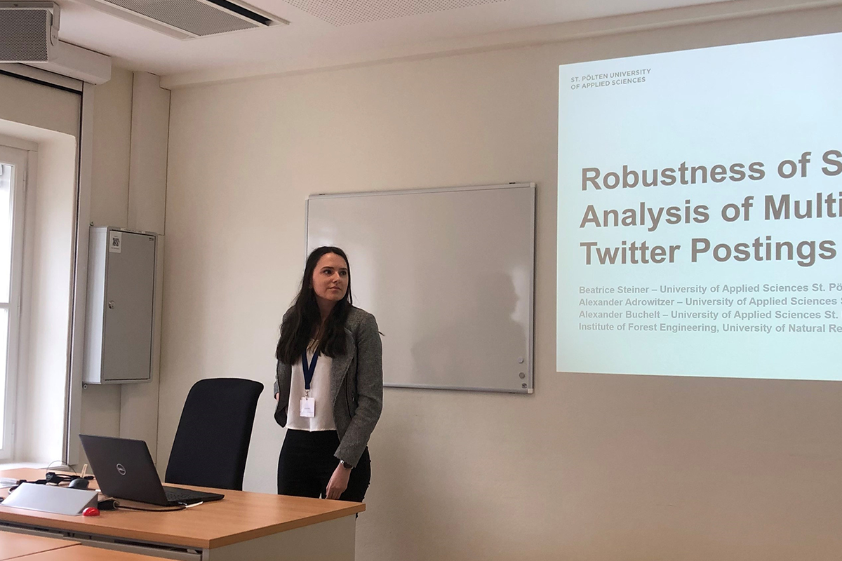 Beatrice Steiner aus dem Bachelor Studiengang Data Science and Business Analytics präsentierte ein wissenschaftliches Paper über die Ergebnisse ihrer Bachelorarbeit bei der 5. Internationalen Data Science Conference vor internationalem Fachpublikum in Krems.