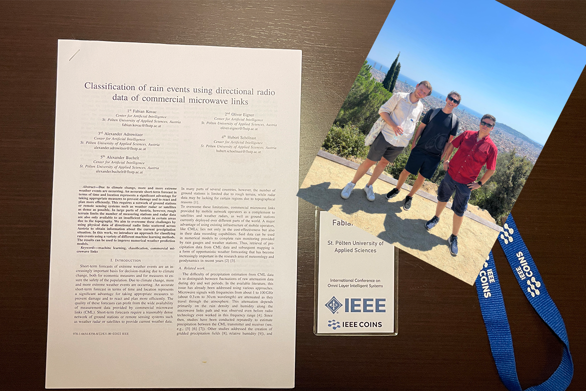 Fabian Kovac, Studierender des Bachelor Studiengangs Data Science & Business Analytics und Mitarbeiter am Institut für IT Sicherheitsforschung in der Forschungsgruppe Data Intelligence, durfte im Rahmen der IEEE COINS 2022 in Barcelona seine erste Publikation vorstellen.