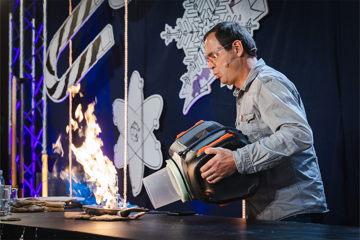 An den großen Erfolg im letzten Jahr anknüpfend, konnten am 19. Dezember 2024 erneut zahlreiche Schulklassen der Volksschule und Sekundarstufe des Landes NÖ via Livestream bei einem spektakulären Experimente-Feuerwerk dabei sein, eine Stunde lang wurde geforscht, experimentiert und gestaunt.