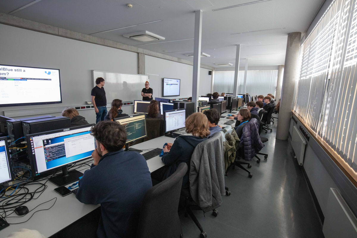 Peter Eder-Neuhauser von Limes Security zeigte, wie gezielte Angriffe auf Energieversorgungsnetze Blackouts auslösen können, während Herfried Geyer in seinem Vortrag „Cloud, Cyber, Cash und Knast“ Einblicke in das globale Geschäft mit IT-Sicherheit gab. Abgerundet wurde der Tag durch einen humorvollen Hands-on-Vortrag von Hochschul-Dozent Daniel Haslinger und Christoph Lang-Muhr, Leiter des Studiengangs Information Security, zu Phishing, SMS-Betrug und Caller-ID-Spoofing, bei dem die Schüler*innen praxisnah die Methoden von Cyberkriminellen kennenlernten.