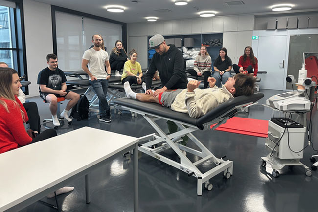 Physiotherapie-Studierende konnten die Funktionen des Winback-Geräts selbst testen und sich umfassend über seine Einsatzmöglichkeiten informieren.