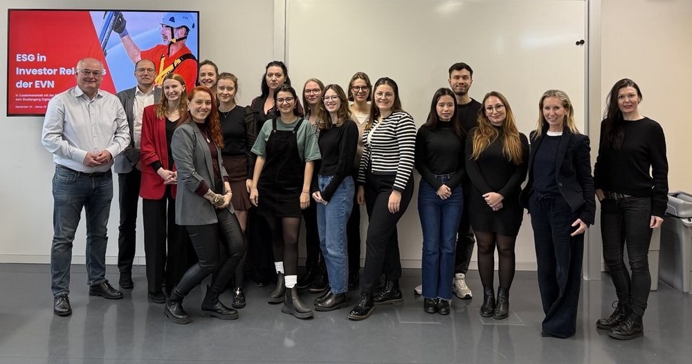 Das Studienjahr 2024/25 hielt für die Studierenden des Master-Studiengangs Digital Business Communications ein spannendes Nachhaltigkeitsprojekt bereit: Aufgabe war es, ein Kommunikationskonzept für Investor Relations der EVN zu entwickeln, das ESG-Themen (Environmental, Social, Governance) gemäß den neuen Anforderungen an die Nachhaltigkeitsberichterstattung integriert und die Kommunikation gegenüber den wesentlichen IR-Zielgruppen (Investoren, Analysten, Rating-Agenturen etc.) durch die erweiterte Nutzung bestehender Medien sowie Erschließung neuer Kommunikationskanäle in Bezug auf ESG-Themen verbessert.