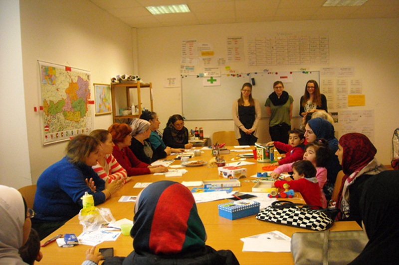 Wissensvermittlung und Tipps zur gesunden Jause für Kinder im Rahmen eines Frauencafés des IBZ St. Pölten für Mütter mit Migrationshintergrund