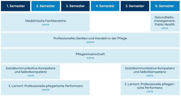 Bachelor-Studiengang Gesundheits- und KrankenpflegePLUSDas modular aufgebaute Studium basiert auf aktuellen wissenschaftlichen Erkenntnissen und vermittelt Lehrinhalte zu diagnostischen, rehabilitativen und therapeutischen Maßnahmen zur Erhaltung von Gesundheit und Verhütung von Krankheit.