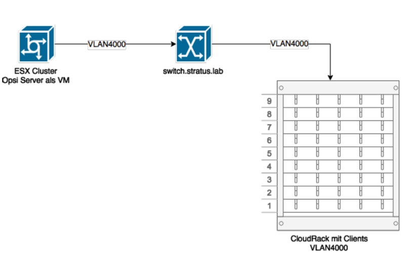 Das Problem war, dass für jede Cloud – Teststellung die Netzwerkinfrastuktur und die installierten Betriebssysteme der Rechner des Cloudracks manuell angepasst werden. Es wurde daher eine einfache Management Lösung gefunden um das CloudRack an die Erfordernisse mit möglichst geringen Aufwand anzupassen. Es wurden mehrere Lösungen evaluiert und eine Lösung mittels der Open Source OPSI umgesetzt.